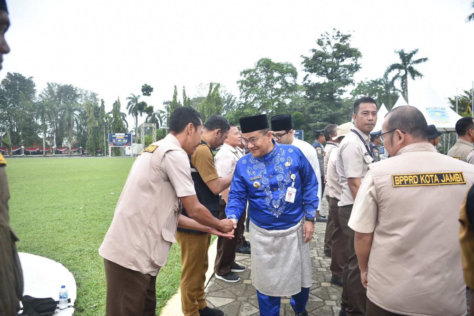 Wali Kota Jambi, Dr. dr. H. Maulana, M.K.M., bersama Wakil Wali Kota Diza Hazra Aljosha, S.E., M.A., secara resmi melepas Tim Optimalisasi tersebut dalam apel pagi di lapangan utama Kantor Wali Kota Jambi, Rabu (14/5/2025). Tim ini terdiri dari personel lintas instansi dan akan menyasar sejumlah wilayah dalam Kota Jambi.