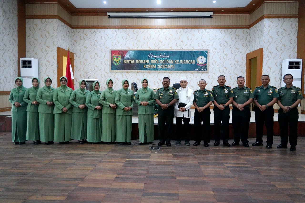 “Kegiatan Bintal ini pada hakekatnya untuk membentuk Prajurit, PNS dan Persit yang profesional dengan dilandasi ketakwaan dan Nasionalisme tinggi berdasarkan Pancasila, UUD 1945, Sapta Marga, Sumpah Prajurit dan Panca Prasetya Korpri serta sikap dan perilaku sesuai dengan kaidah-kaidah agama,” ujar Kasrem.