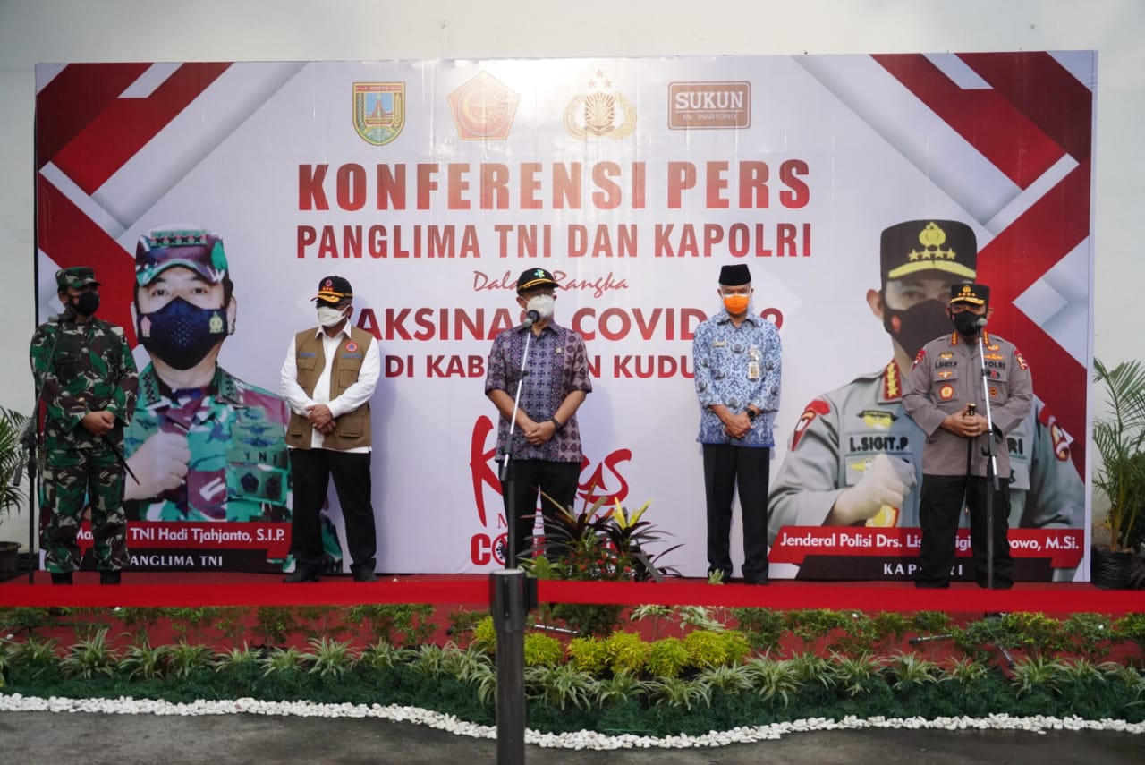 KUDUS (WARTANEWS.CO) – Panglima TNI Marsekal Hadi Tjahjanto bersama Kapolri Jenderal Listyo Sigit Prabowo meninjau langsung pelaksanaan vaksinasi terhadap 1.300 karyawan tekstil di Kudus, Jawa Tengah, Kamis (17/6/2021).