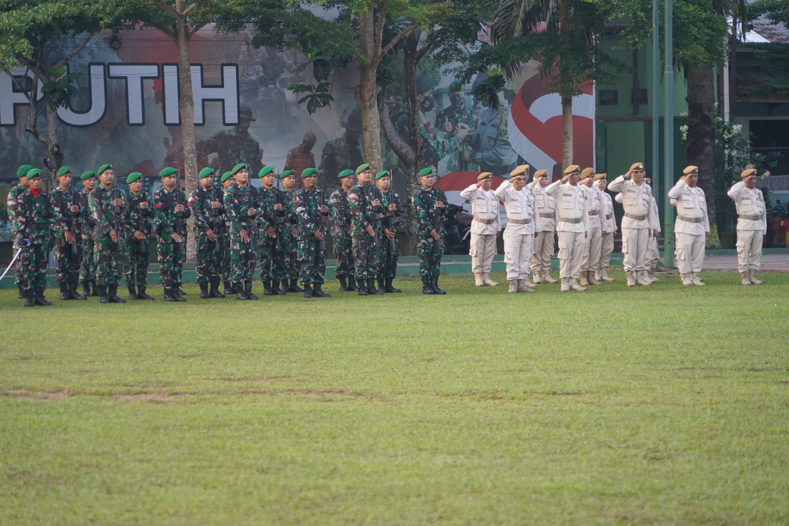 Bertindak sebagai Inspektur Upacara Kasilog Kasrem 042/Gapu Kolonel Czi Yudil Hendro dan Komandan Upacara Lettu Inf Syahril serta diikuti oleh para Kasi/Pasi, para Perwira, Bintara dan Tamtama sera PNS Makorem 042/Gapu.