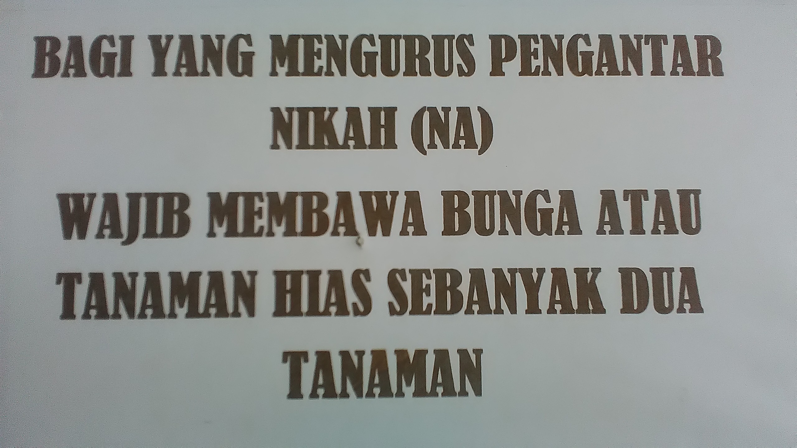 MUARO JAMBI (WARTANEWS.CO) – Bagi anda dan pasangan anda sebagai pasangan calon pengantin baru, yang ingin melangsungkan Pernikahan di Desa Simpang Sungai Duren, Kecamatan Jambi Luar Kota, syaratnya hanya cukup memberikan dua buah tanaman hias/bunga atau bibit tanaman buah-buahan sebagai cenderamata dan kenang-kenangan kepada pihak Pemerintah Desa (Pemdes) setempat, setelah mengurus Surat Pengantar Nikah (NA) di Kantor Desa.