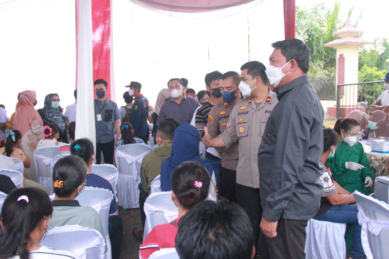 TUNGKAL ULU (WARTANEWS.CO) – Wakil Bupati Tanjung Jabung Barat Hairan, SH didampingi istri meninjau langsung pelaksanaan kegiatan vaksinasi massal yang diselenggarakan di Polsek Tungkal Ulu, Sabtu (18/9).