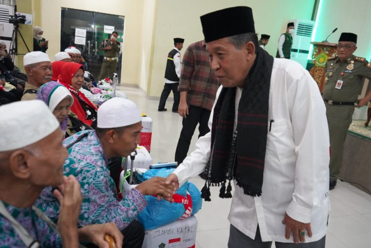 Jambi (WARTANEWS.CO) – Wakil Gubernur (Wagub) Jambi Drs. H. Abdullah Sani, M.P.di, sambut kepulangan Jemaah Haji asal Provinsi Jambi Kloter Pertama 372 Jemaah BTH 17 yang berasal dari Kabupaten Tanjung Jabung Barat setelah lebih dari 40 hari berada di tanah suci, Arab Saudi untuk menunaikan rukun Islam kelima, penyambutan dilakukan di Asrama Haji Jambi, Senin (17/07/2023).