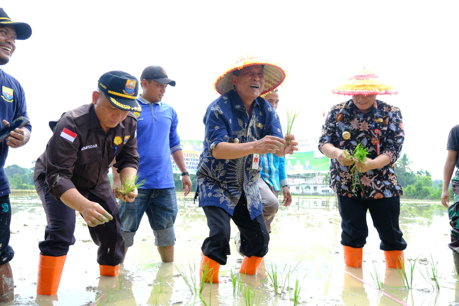 Turut hadir mendampingi Wagub Sani dalam penanaman padi Penjabat Bupati Sarolangun Dr. Ir. Bachril Bakri, M.App, Sc., Asisten Bidang Pemerintahan dan Kesejahteraan Rakyat Setda Provinsi Jambi Arief Munandar, Kepala Dinas Tanaman Pangan, Holtikultura dan Peternakan Ir. Rumusdar, Kepala Bappeda Provinsi Jambi Agus Sunaryo, Kepala Dinas Koperasi dan UMKM Provinsi Jambi Sardaini, Kasatpol PP Provinsi Jambi Rahmat Hidayat dan Jajaran OPD Kabupaten Sarolangun. (*/eco)