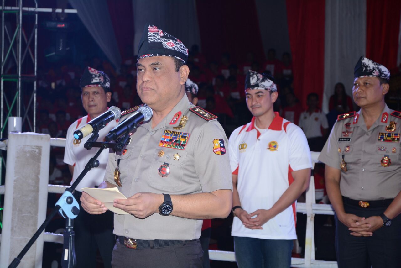 JAMBI – Wakil Kepala Kepolisian Negara Republik Indonesia, Komisaris Jenderal Polisi Drs Syafruddin,MSi, mewakili Kepala Kepolisian Negara Republik Indonesia Jenderal Polisi Drs HM Tito Karnavian,MA,Phd, Selasa malam (18/07/2017), sekira pukul 20.00 Waktu Indonesia bagian Barat (WIB) di gedung Gelanggang Olah Raga (GOR) Kota Baru Jambi, Kota Jambi resmi membuka penyelenggaraan Kejuaraan Nasional Tinju Amatir trophy piala bergilir KAPOLRI CUP-1 Tahun 2017.