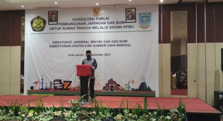Jambi (WARTANEWS.CO) – Dihadiri oleh Camat, Lurah serta Forum RT se Kota Jambi, Wakil Wali Kota Jambi Dr. dr. H. Maulana, MKM buka Konsultasi Publik Pembangunan Jaringan Gas Bumi Untuk Rumah Tangga Melalui Skema KPBU (Kerjasama Pemerintah dan Badan Usaha), yang digelar Direktorat Jenderal Minyak dan Gas Bumi, bertempat di Aston Hotel Jambi, Kamis (30/09).