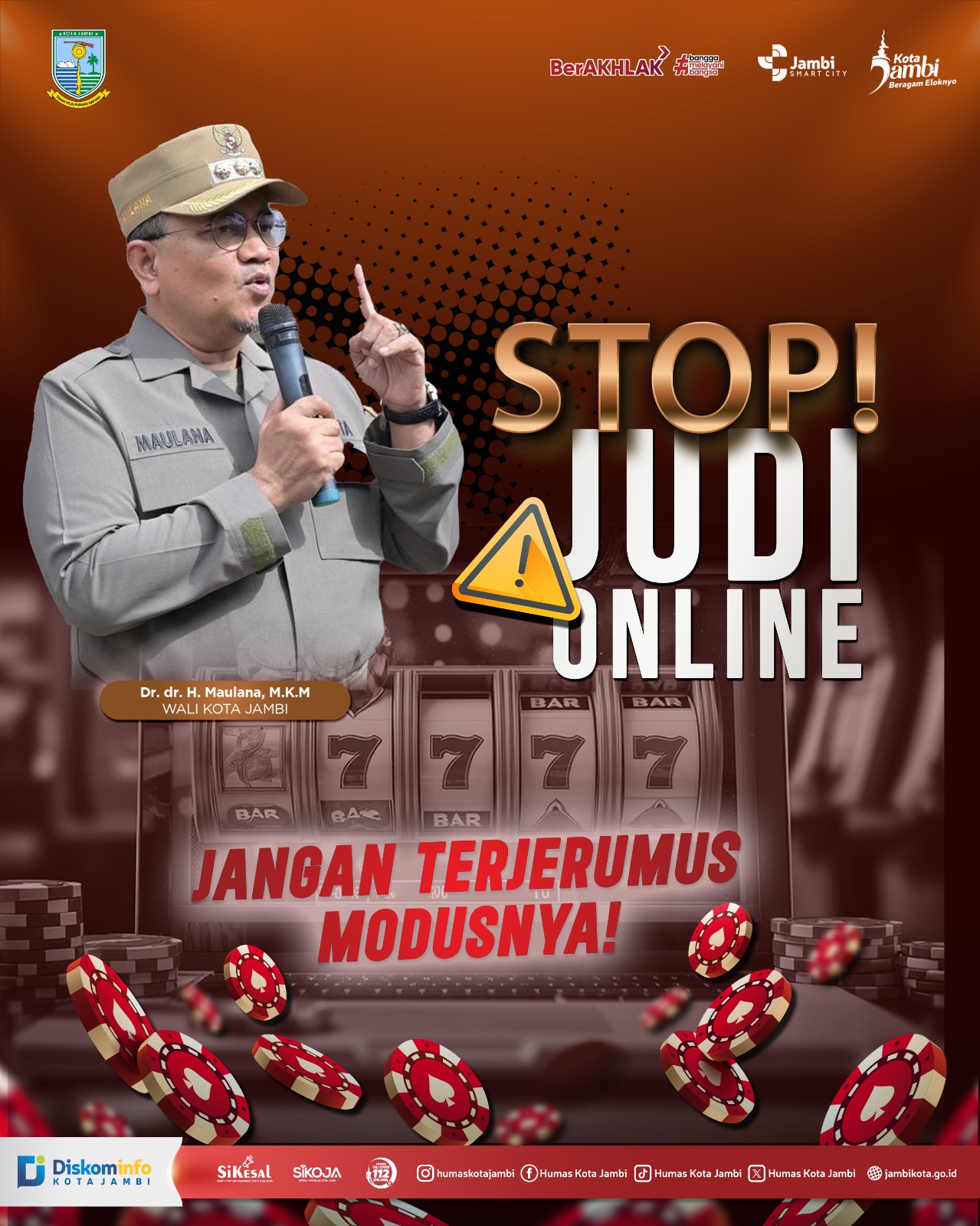 “Judi online adalah ancaman nyata bagi masa depan, baik bagi individu maupun keluarga. Oleh karena itu, saya mengimbau seluruh ASN dan masyarakat Kota Jambi untuk tidak sekali-kali terlibat. Jangan terjerumus dalam praktik ilegal ini, sekecil apapun bentuknya,” tegas Wali Kota Maulana.