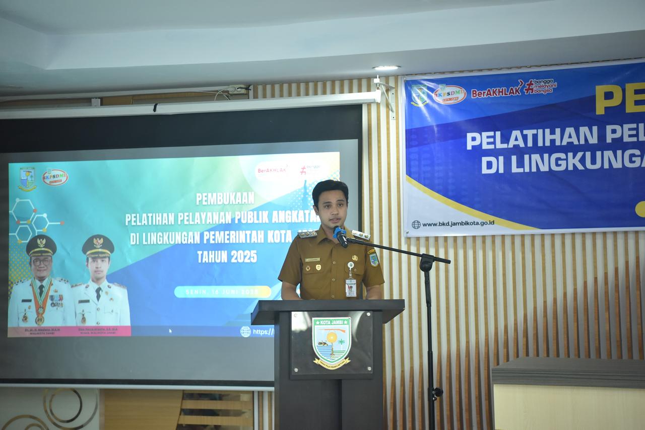 Jambi (WARTANEWS.CO) – Pemerintah Kota Jambi kembali menegaskan komitmennya dalam membangun birokrasi yang profesional, adaptif, dan berorientasi pada pelayanan publik prima. Melalui Badan Kepegawaian dan Pengembangan Sumber Daya Manusia Daerah (BKPSDMD), Pemkot Jambi menggelar Pelatihan Pelayanan Publik Angkatan II, yang berlangsung selama lima hari kerja, 16 hingga 20 Juni 2025, di Aula Gedung Diklat BKPSDMD Kota Jambi.