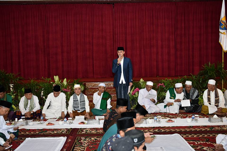 Istighosah dihadiri Rais Syuriah PWNU, KH.Syamsuddin Ali, Khatib AM K.H. Syaikhon, Tuan Guru (Ulama), Wakil Walikota Jambi, H. Abdullah Sani, Kepala OPD Lingkup Pemerintah Provinsi Jambi, serta para undangan lainnya. (Raihan)