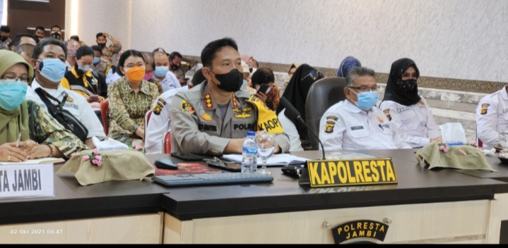 Kapolresta Jambi menyampaikan, pelaksanaan zoom meeting bersama Kapolda dalam rangka percepatan penanganan Covid-19 di Kota Jambi. Dengan pembahasan untuk pencapaian maksimal pelaksanaan vaksinasi, Kota Jambi khususnya, agar bisa meningkat.
